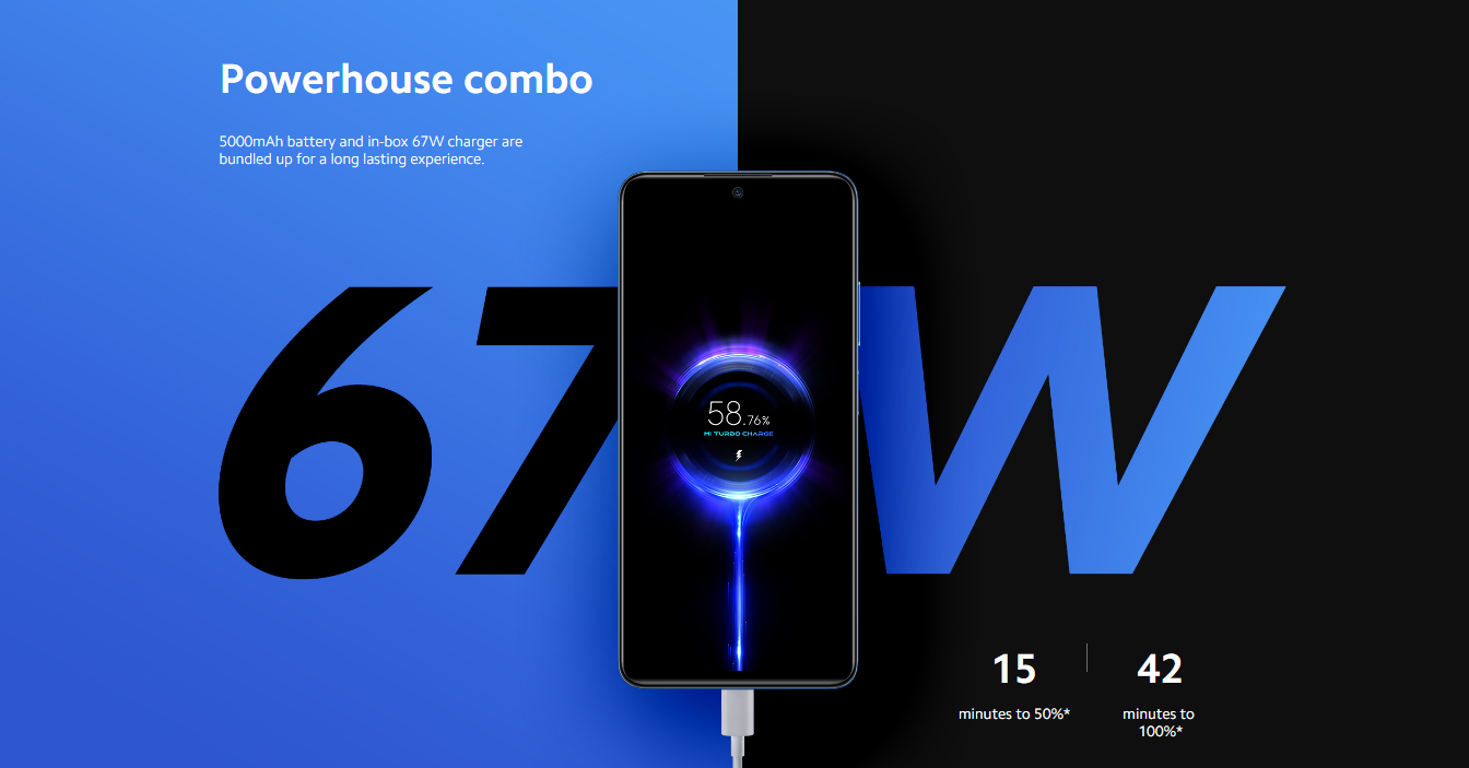 5000mAh battery and in-box 67W charger are bundled up for a long lasting experience.
