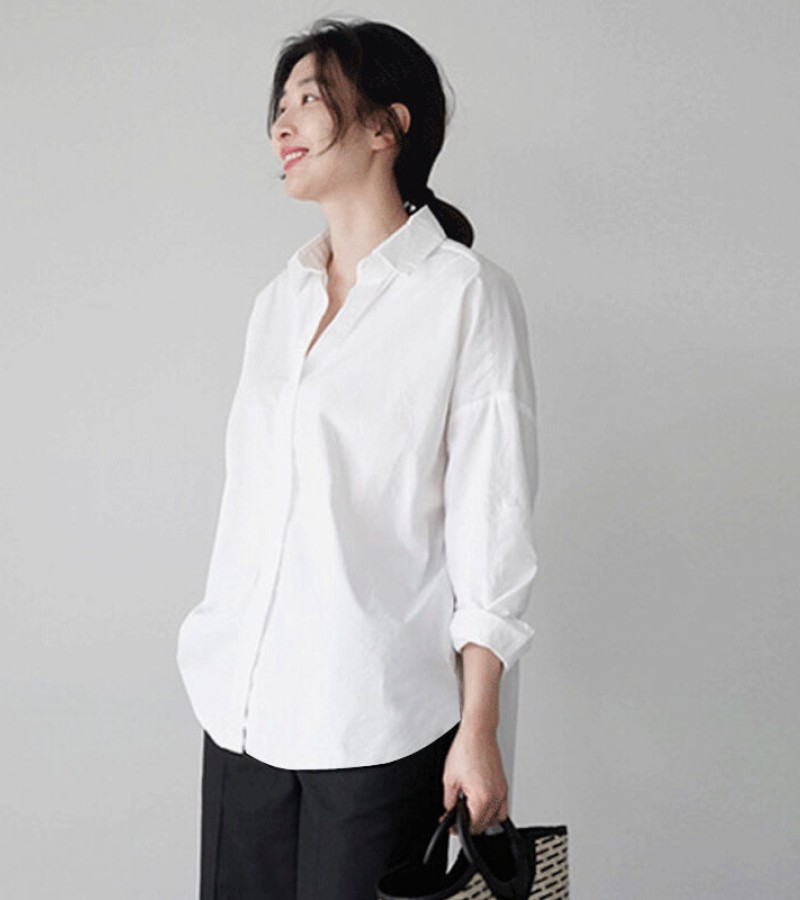 Loose Spring Korean-Style Cotton Instagram Shirt with Long Sleeves