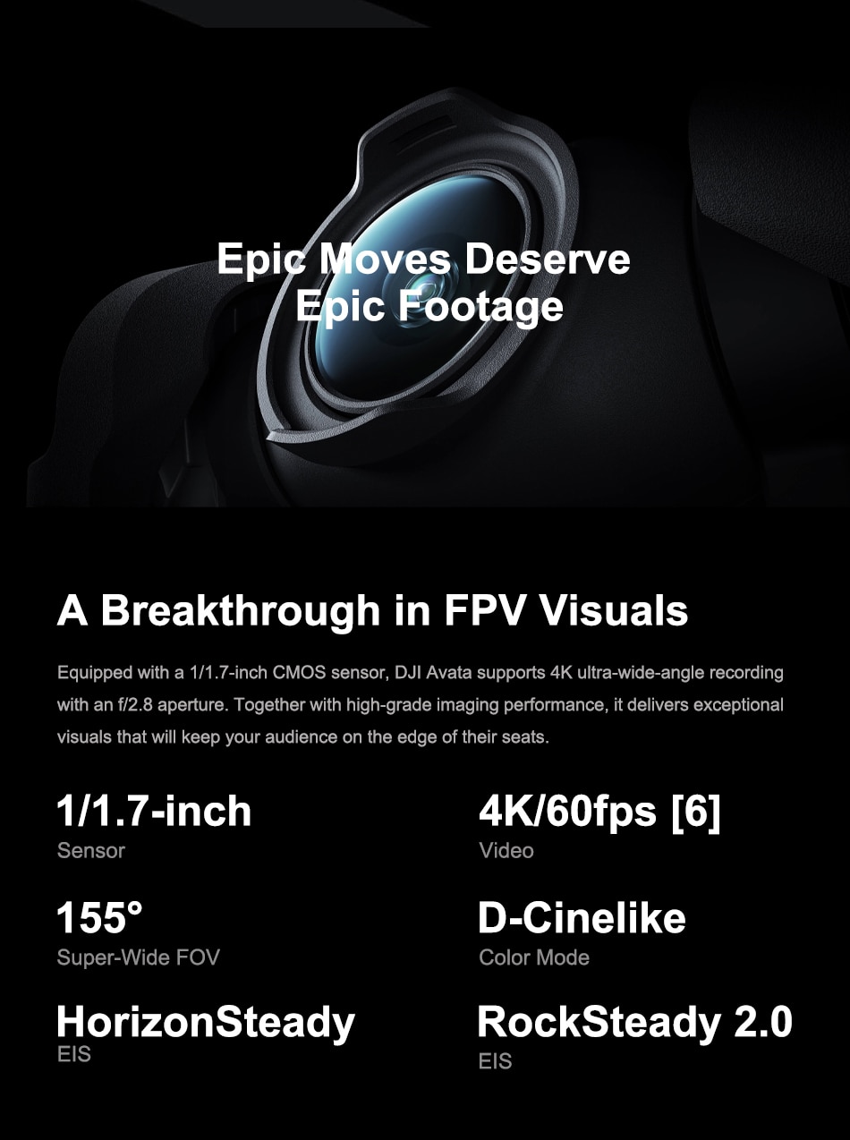 3. Compared with the 84° FOV of ordinary camera drones, the video recording FOV of DJI Avata has been expanded to 155°. This expanded FOV makes a breakthrough in aerial photography and facilitates more impactful visual effects.